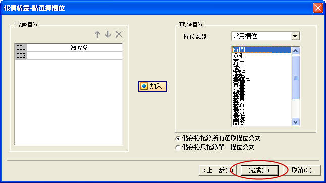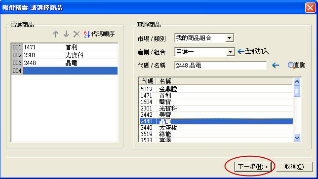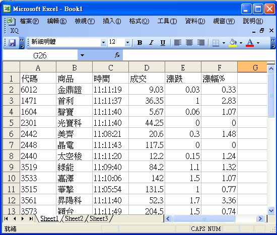步驟三:選取的商品報價資訊將會輸入至Excel。