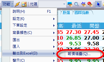 步驟一:點選[功能]後,選取[輸出到Excel]再點選[報價精靈]。