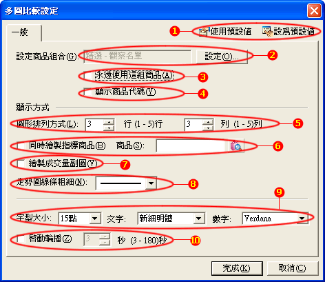 - 走勢圖線條粗細:使用者可選擇線條粗細。