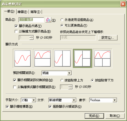 - 走勢圖線條粗細:使用者可選擇走勢圖上的線條粗細。