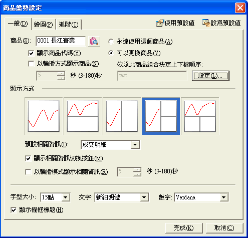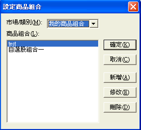 (圖一:商品盤勢的屬性設定對話盒,按[設定]進行編輯)