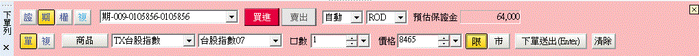 ( )顯示所輸入委託之〔預估保證金〕,依台灣期貨交易所公佈之期貨商品原始保證金為