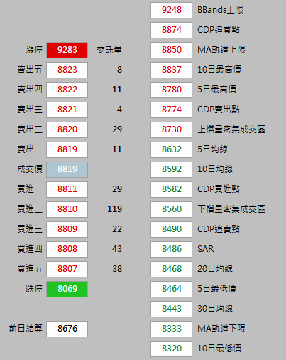 ( )選取〔買進〕呈現紅色背景,〔賣出〕呈現藍色背景做為提示。 |