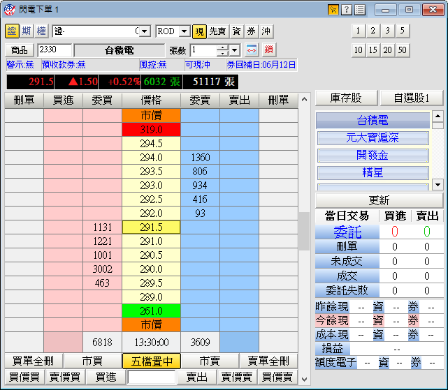 , (滑鼠左鍵下單,滑鼠右鍵刪單)。