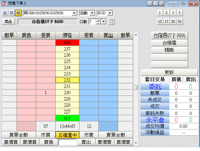 按〔Shift + 左鍵〕系統會以「市價」送出「買進」委託。