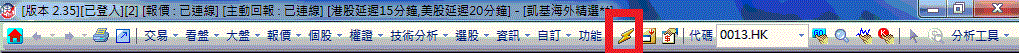 ( ):此功能列可於中央的價格輸入欄輸入欲委託的價格,按「買進」或「賣出」鈕後,可執行限價委託。