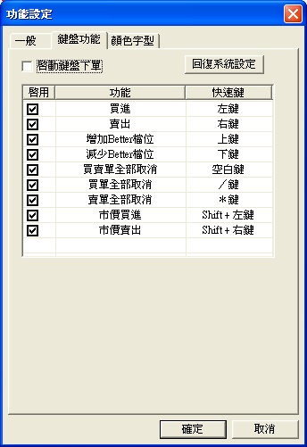 「 ?動鍵盤下單」:設定啟動鍵盤下單功能。