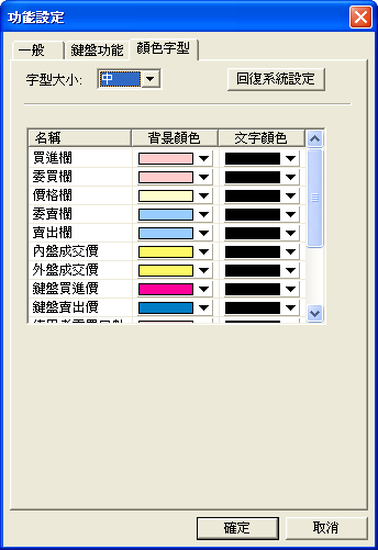 〔一般〕、〔鍵盤功能〕、〔字型顏色〕。