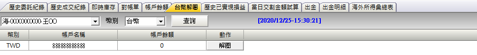 點選[交易]menu中「複委託帳務」進入「台幣解圈」。