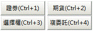 ( )選取〔證券〕、〔期貨〕、〔選擇權〕、〔複委託〕按鈕,以切換不同交易介面。 |
