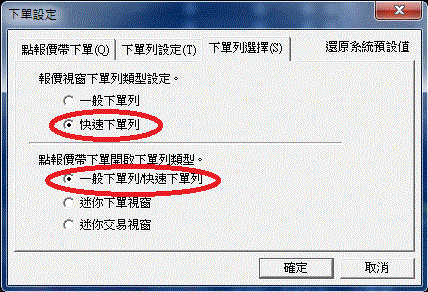 當下單設定設定為點報價帶下單至快速下單列時,在可以點價帶下單的報價處點擊滑鼠左鍵兩次,會將所選商品及價格帶至快速下單列。 |