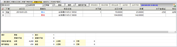 ) 由下拉式選單選擇查詢「全部交易」、「期貨單式」、 「期貨複式」、「選擇權單式」、