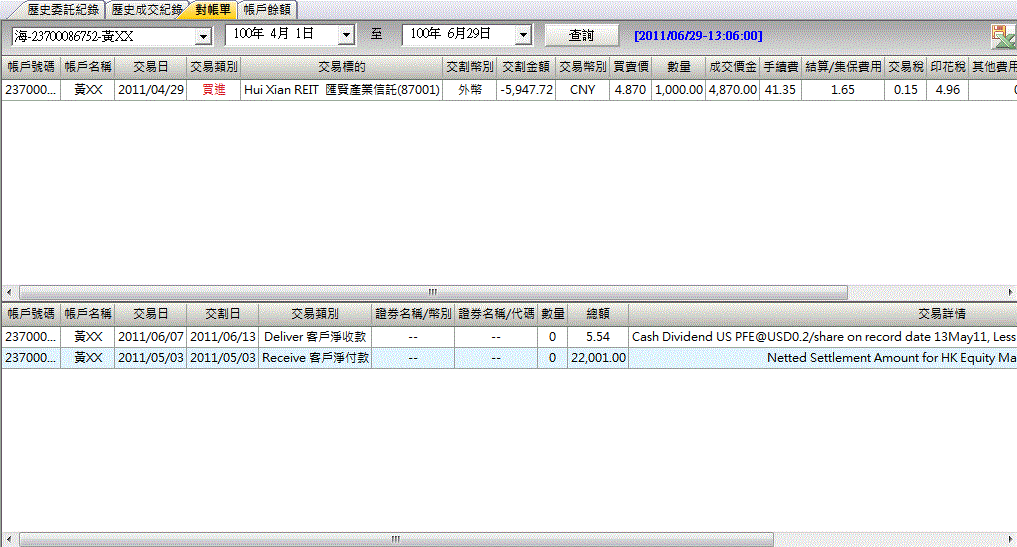 由交易Menu"複委託帳務"點選進入「對帳單」。