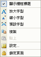 放大/縮小/預設字型:讓使用者調整作用欄框中的字型大小。