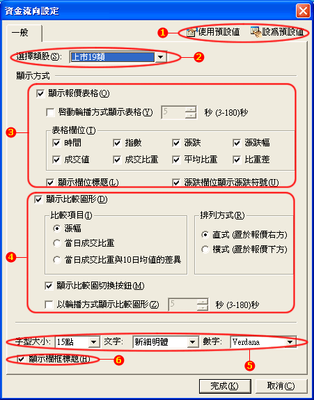 輪播:若勾選此項並指定秒數時間,當畫面無法一次列示所有類股時,系統會自動輪播類股資訊。