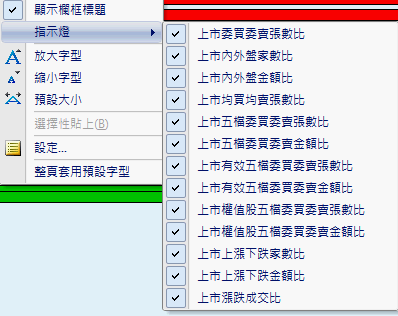在市場指示燈內容上按滑鼠右鍵,會出現一快速切換選單,可以經由此選單,啟動輔助功能。