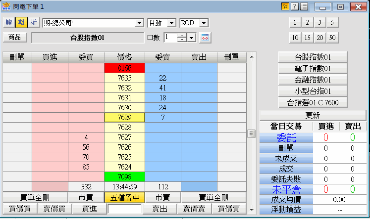 (滑鼠左鍵下單,滑鼠右鍵刪單)。 |