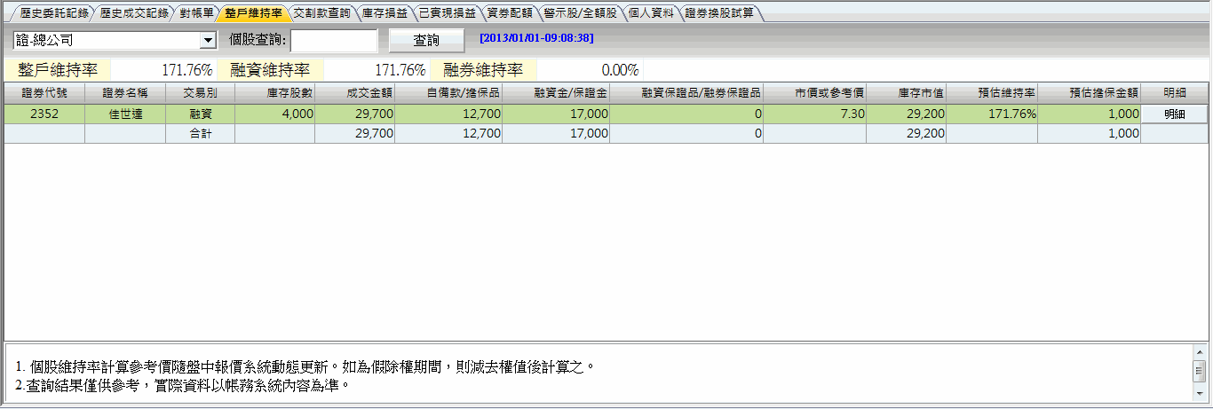 證券帳務-整戶維持率