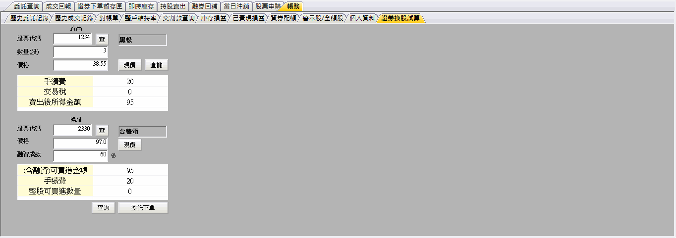 )按鈕,會顯示 手續費、交易稅、賣出後所得金額。