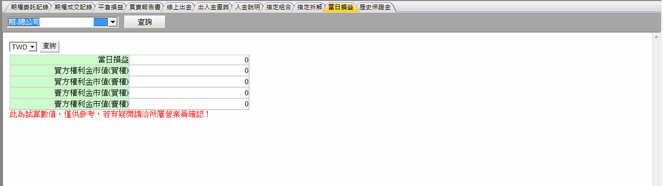 期權帳務-當日損益