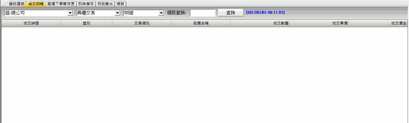 )由下拉式選單選擇查詢 「興櫃交易」、「全部交易」、「普通交易」、「盤後交易」、「零股交易」。
