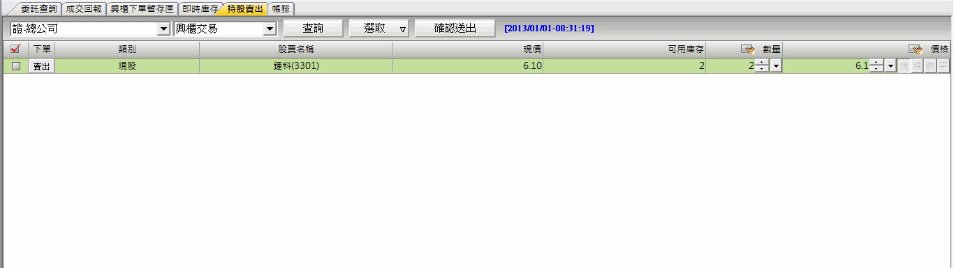 即可送出委託;若按下〔取消〕鈕,則取消此筆委託單的送出動作。 |