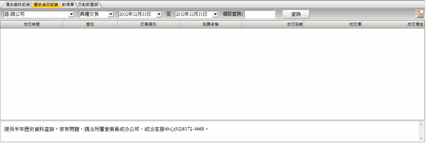 )由下拉式選單選擇查詢「興櫃交易」、「全部交易」、「普通交易」、「盤後交易」、「零股交易」。