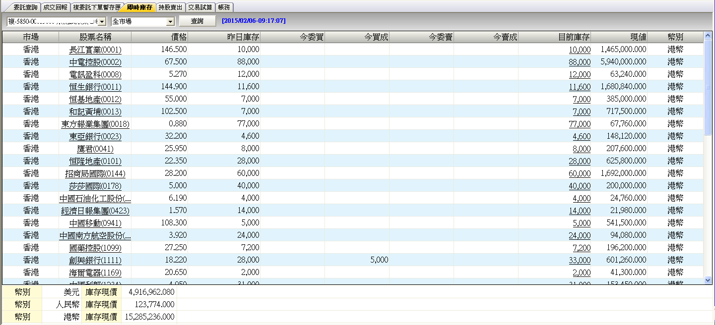 複委託交易-即時庫存
