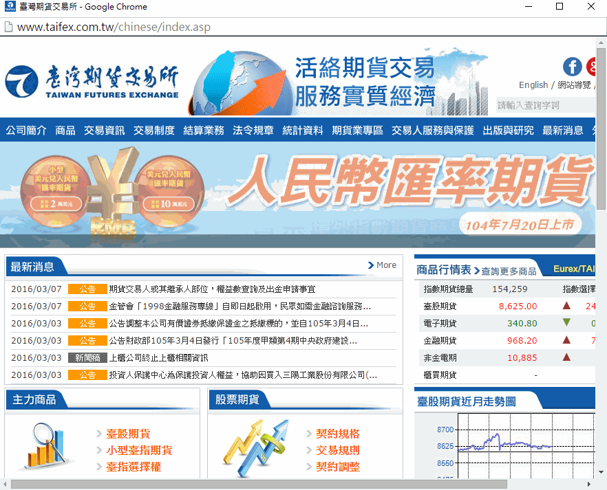 由「相關連結」頁面; 點選「台灣期貨交易所」頁籤。