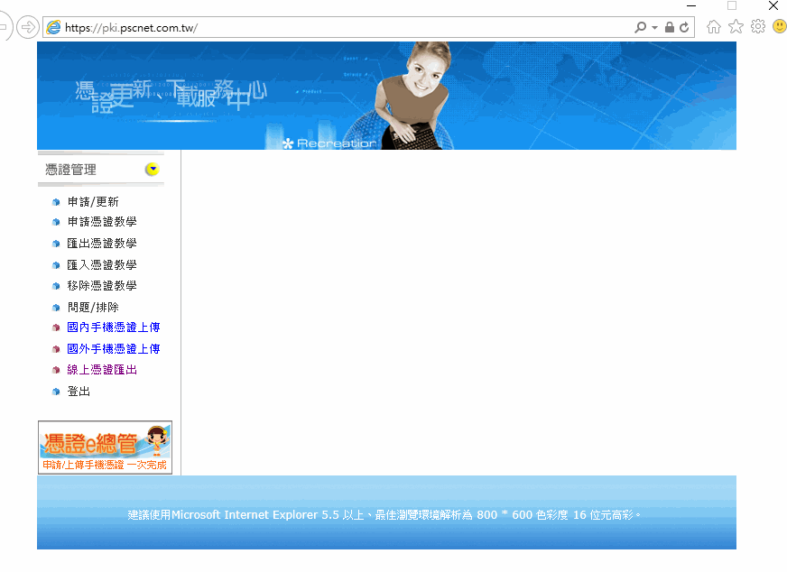 由「客戶服務」頁面; 點選「電子憑證申請」頁籤。