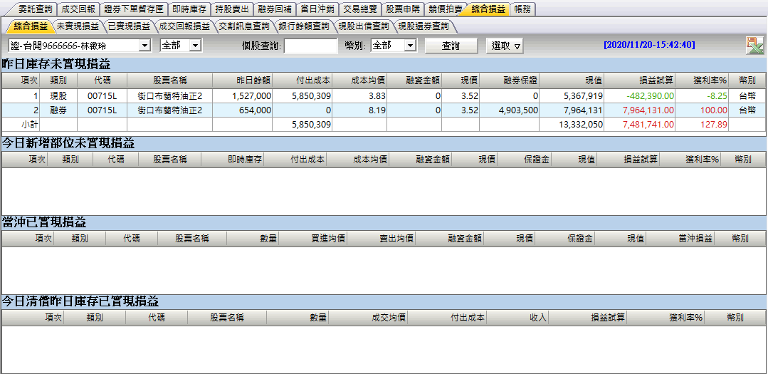 「昨日庫存未實現損益」、「今日新增部位未實現損益」、 |