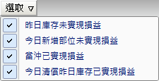 「當沖已實現損益」、「今日清償昨日庫存已實現損益」選項。