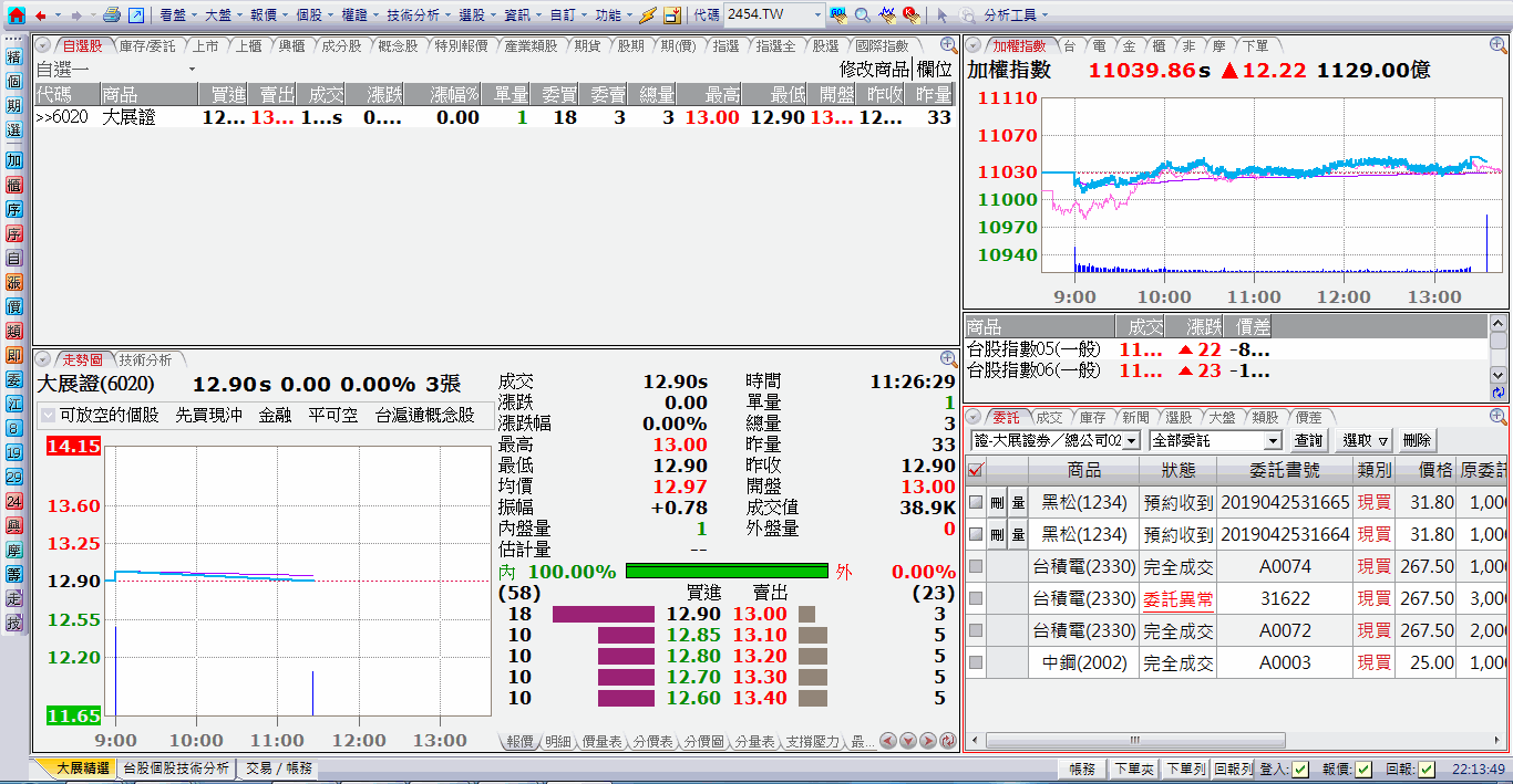 按〔Alt+O〕進入﹝完整下單頁面〕; 如圖,按〔Alt+1〕 可切換到﹝大展精選〕