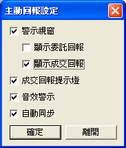 〔功能 \ 下單設定 \ 主動回報設定 〕設定警示回報。