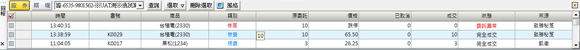 ()分為〔證券〕、〔期權〕委託回報選項,點選項目後,底部呈現黃色顯示。