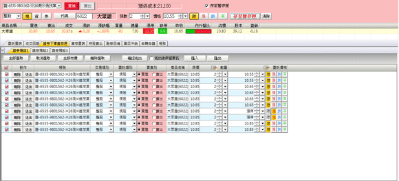 以滑鼠左鍵點擊( )按鈕,可將工作表內已選取之委託資料,買進委託自動變更漲停價格,賣出委託自動變更跌停價格。 |