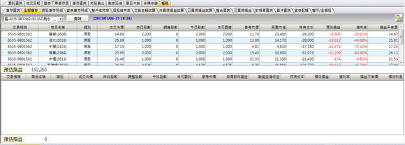 由交易頁面"群組按鈕"的「證券」-「帳務」點選「 全部庫存」。