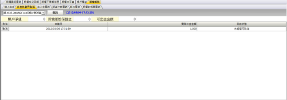由交易頁面"群組按鈕"的「期貨選擇權」點選「期權帳務」/「出金狀態與取消」。