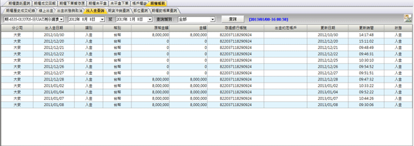 選單,設定「全部」、「入金全部」、「出金全部」、「出金未處理可取消」、「出金已處理不可取消」等查詢條件。 |