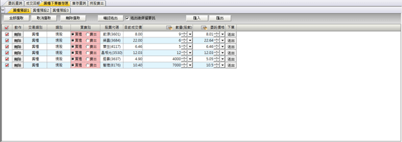 已勾選( )的委託資料在點擊( )按鈕後,會繼續保留在下方的工作表中,讓後續下單時方便繼續使用。 |