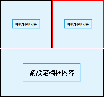 - 「分割欄框」提供將畫面再作切割的設計用。在要進行分割的欄框中,用滑鼠點一下使該欄框成為作用欄位,此時該欄框會以紅色框線框住,接著利用「水平分割、水平三分、垂直等分、垂直三分」以及「刪除欄框」的功能來設計版面。重覆此動作,即可切割畫面到所需的版面式樣。