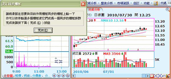 - 「設定同步欄框」是指定那些欄框要和目前的作用欄框成為同一個同步族群,也就是任一個同步族群欄框成為作用欄框時,切換商品,與其同屬同步欄框的畫面,即會同步將內容切換至新商品。
