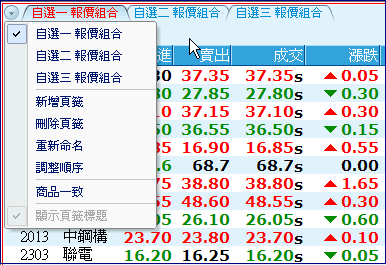 | 點選功能列中的「自訂」功能項,用戶即可依自己看盤需求設定看盤畫面。