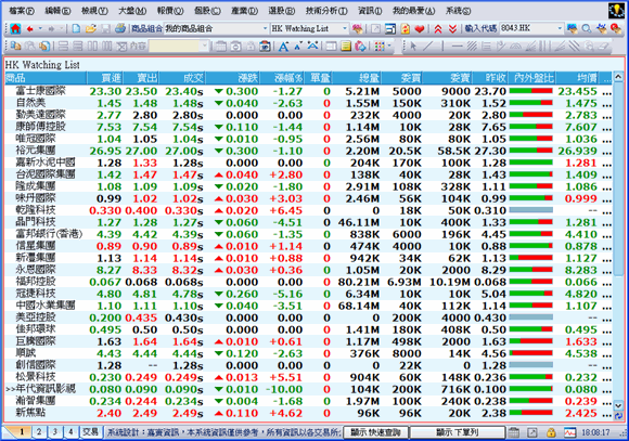 - 游標所在商品(即商品名稱前方有[>>]符號者),按[Enter]鍵,直接進入商品盤勢。點滑鼠右鍵,可以挑選要進一步分析的功能頁。