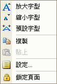 - 放大/縮小/預設字型:讓使用者調整作用欄框中的字型大小。