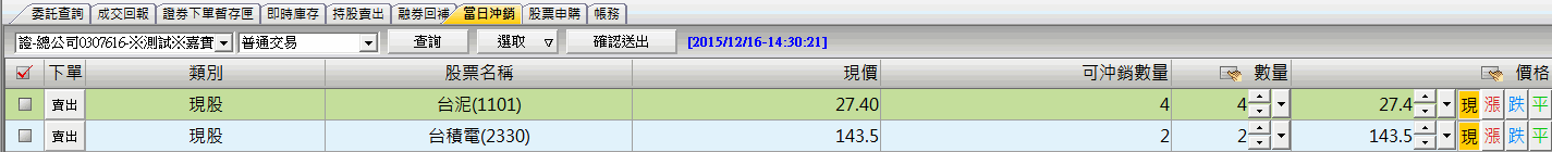 由交易Menu"證券交易"點選後進入選「當沖下單」。