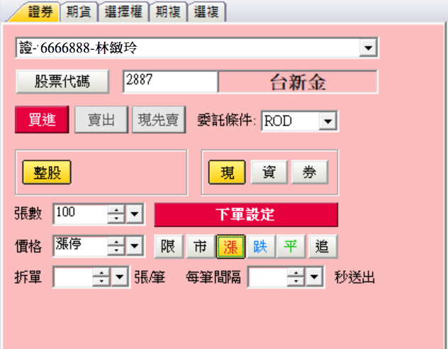 於( )輸入每累積成交一定數量的成交量後,同時設定( )。 |