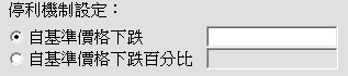 以多單停利為例,於( )設定自基準格下跌點數或百分比;若是空單停利則是設定自基準價上漲點數或百分比。 |