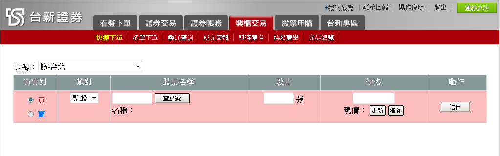 以滑鼠左鍵點擊「清除」,系統會清除 所輸入的「委託數量」及「價格」。 |