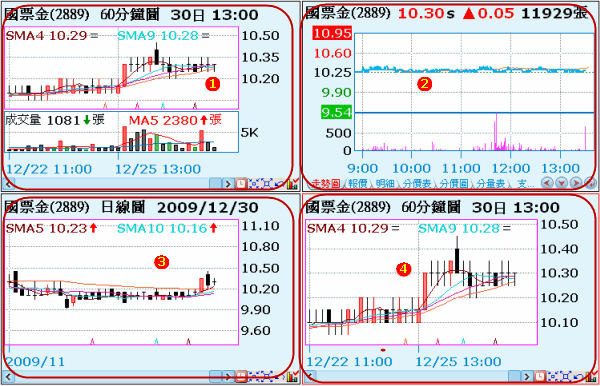 點選主功能列中「個股」,接著選取「分時走勢圖」,再選取「個股走勢與分鐘線」。